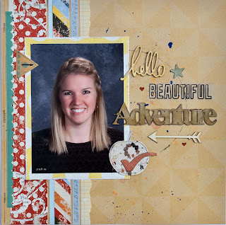 Now that I'm back from my trip, I've finally found some time to scrap! Here's a layout I whipped up for Rochelle Spear's challenge and Scrap with Stacy's moodboard challenge. I liked the layout challenge so I used it for my annual school photo from last year.